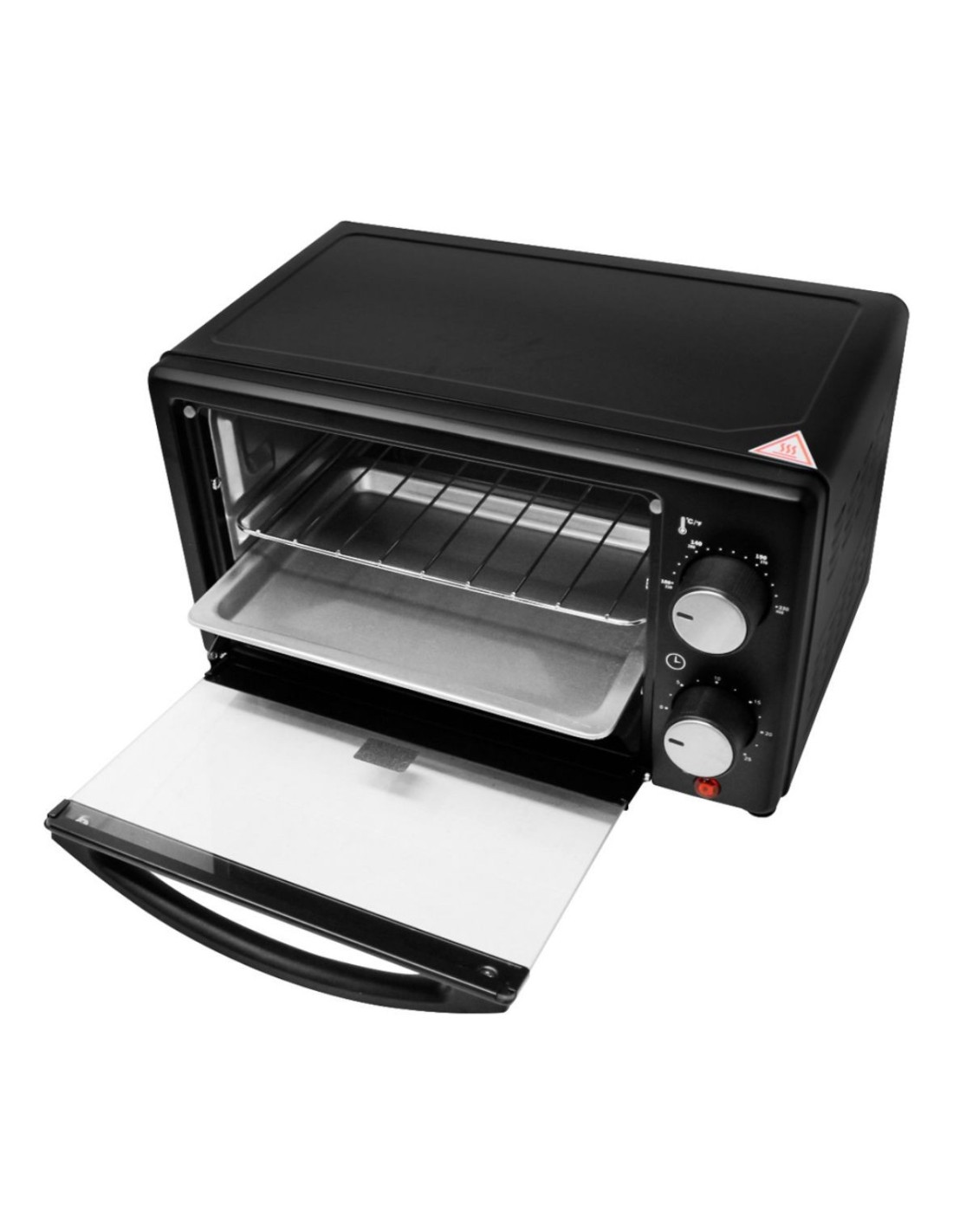 Horno eléctrico de 10 litros, temporizador de 30 min. Control de temperatura de 100 C a 230 C, tubo de calentamiento de cuarzo para que sea uniforme, puerta de vidrio transparente, patas antideslizantes, con una tejilla. En Proveedora del Hogar ofrecemos Hornos y una gran variedad de electrodomésticos para tu cocina, negocio y hogar, de la mejor calidad al mejor precio.
