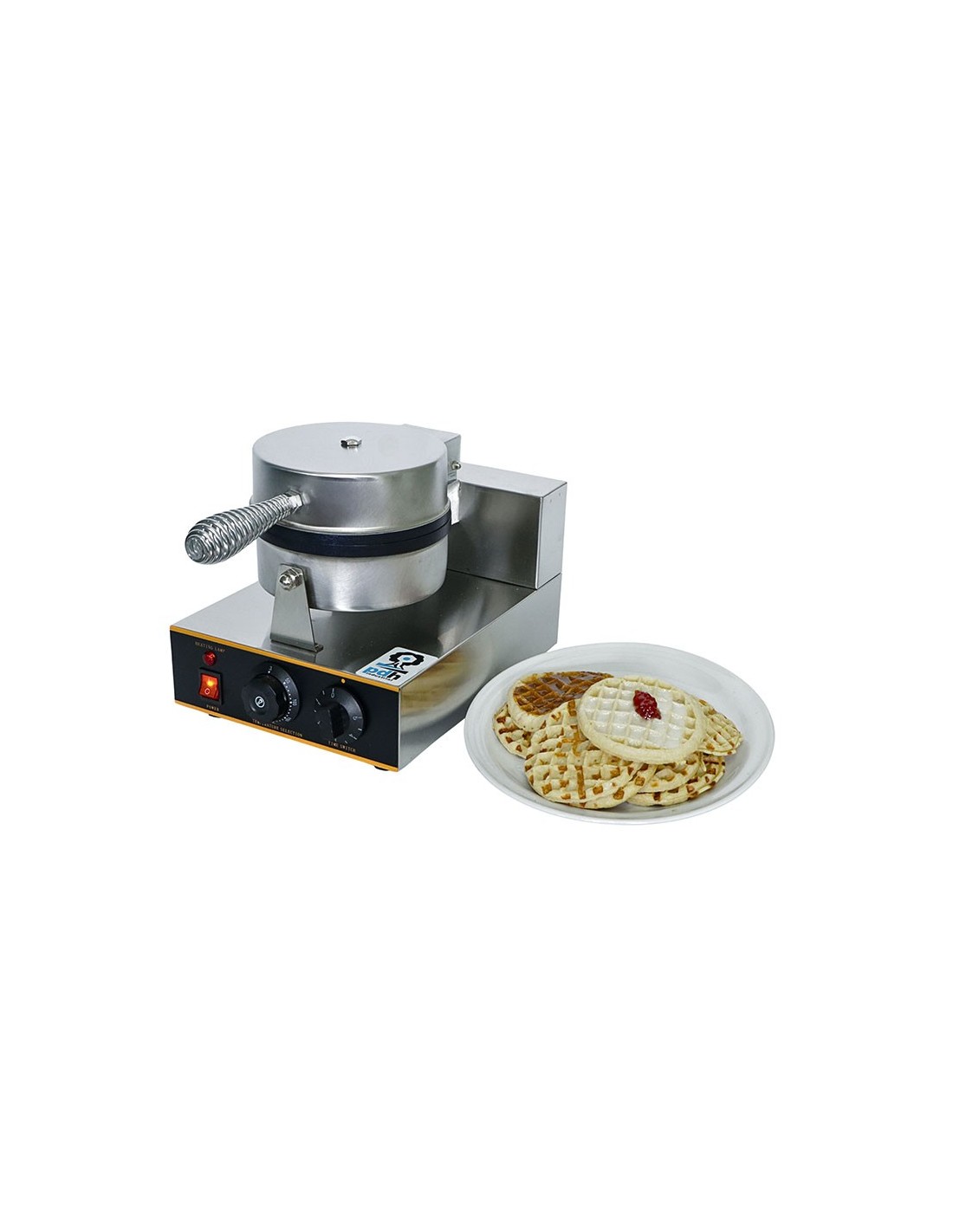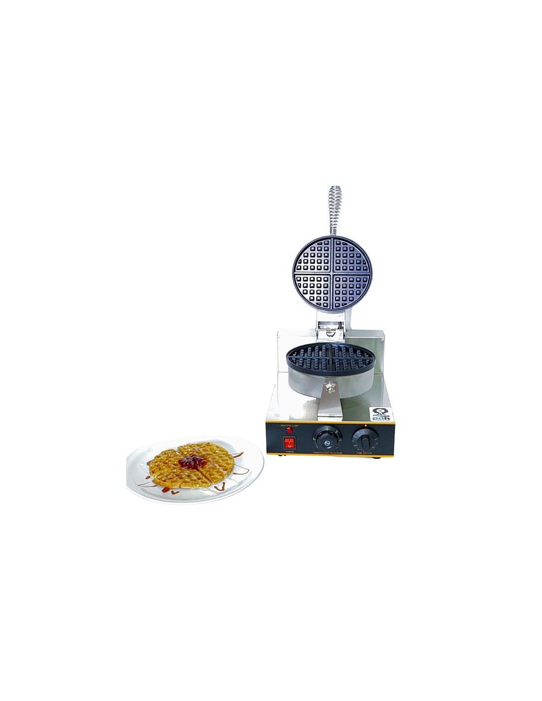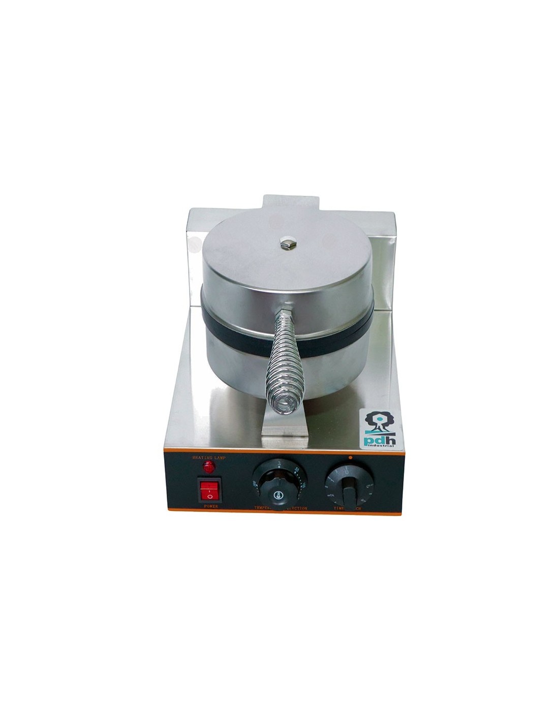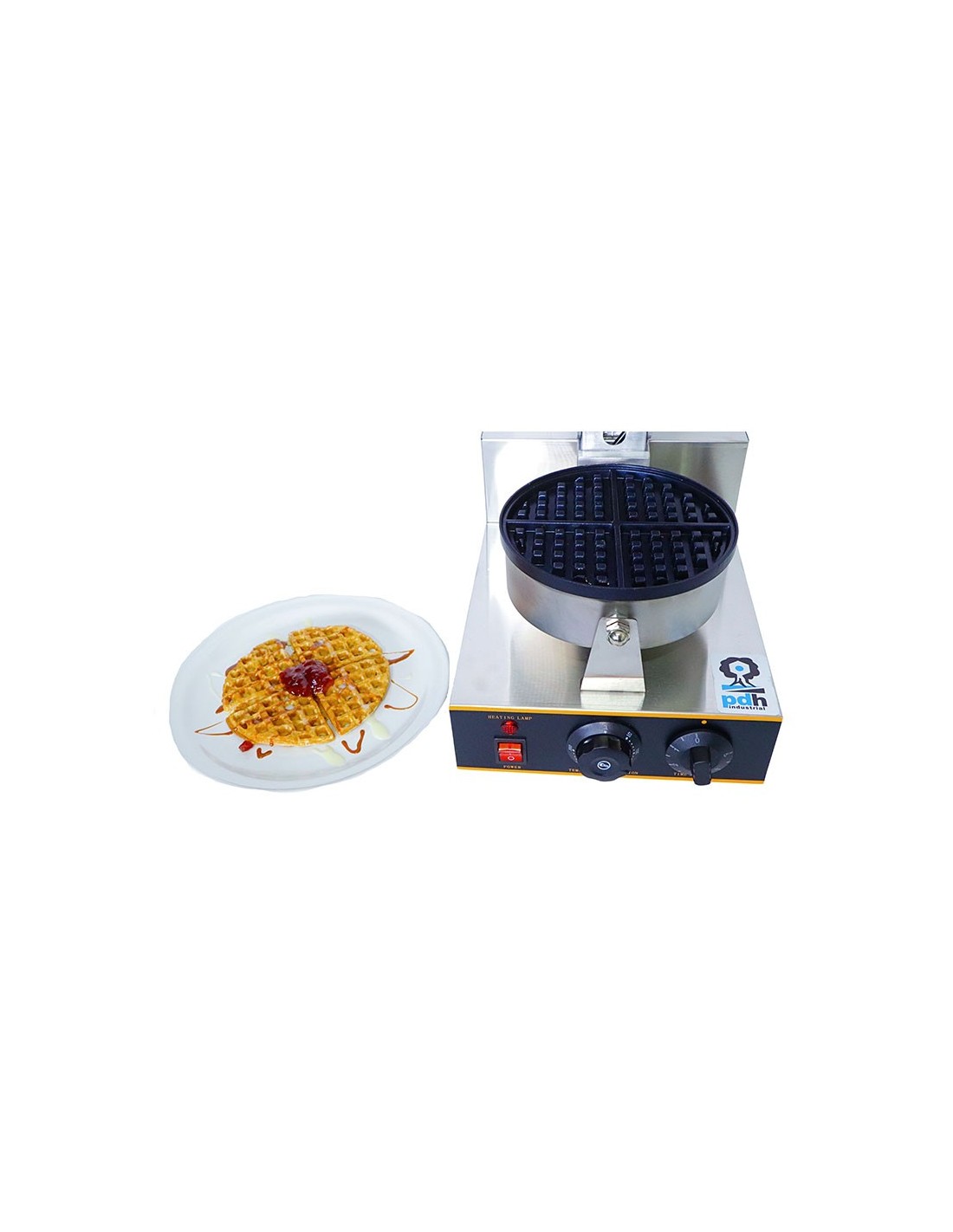Waflera Comercial marca PDH, Maquina comercial para preparar wafles circulares partidos en cuartos, Ideal para usar en cafetería, fabricado en acero inoxidable con antiadherente, Termostato variable desde 50°C hasta 300°C, Perilla de tiempo desde 1 minutos hasta 5 minutos, foco indicador de encendido, consumo de energía de 1,200 watts. Wafleras. En Proveedora del Hogar ofrecemos Wafleras y una gran variedad de electrodomésticos para tu cocina, negocio y hogar, de la mejor calidad al mejor precio.