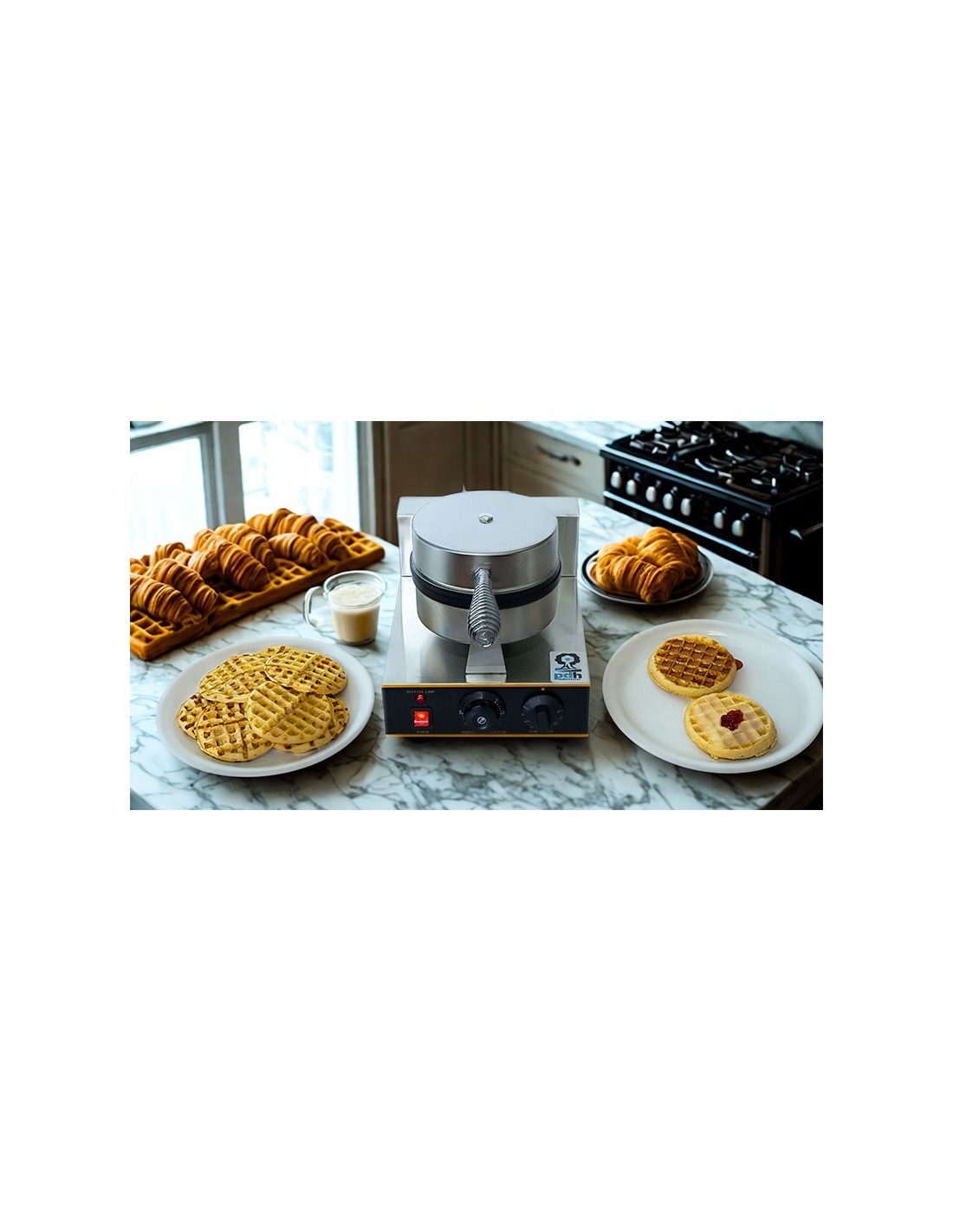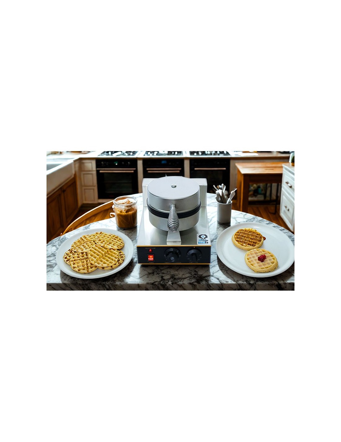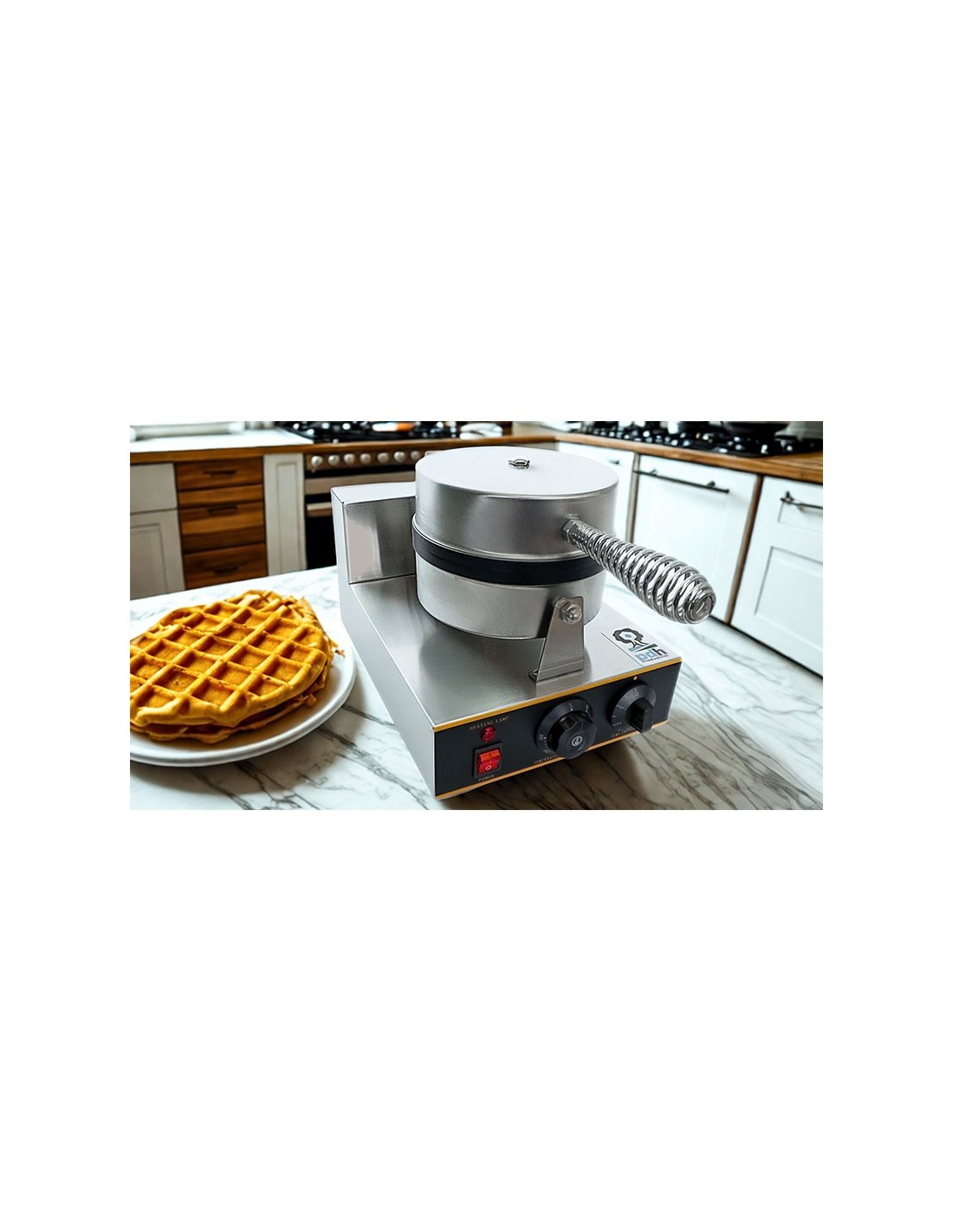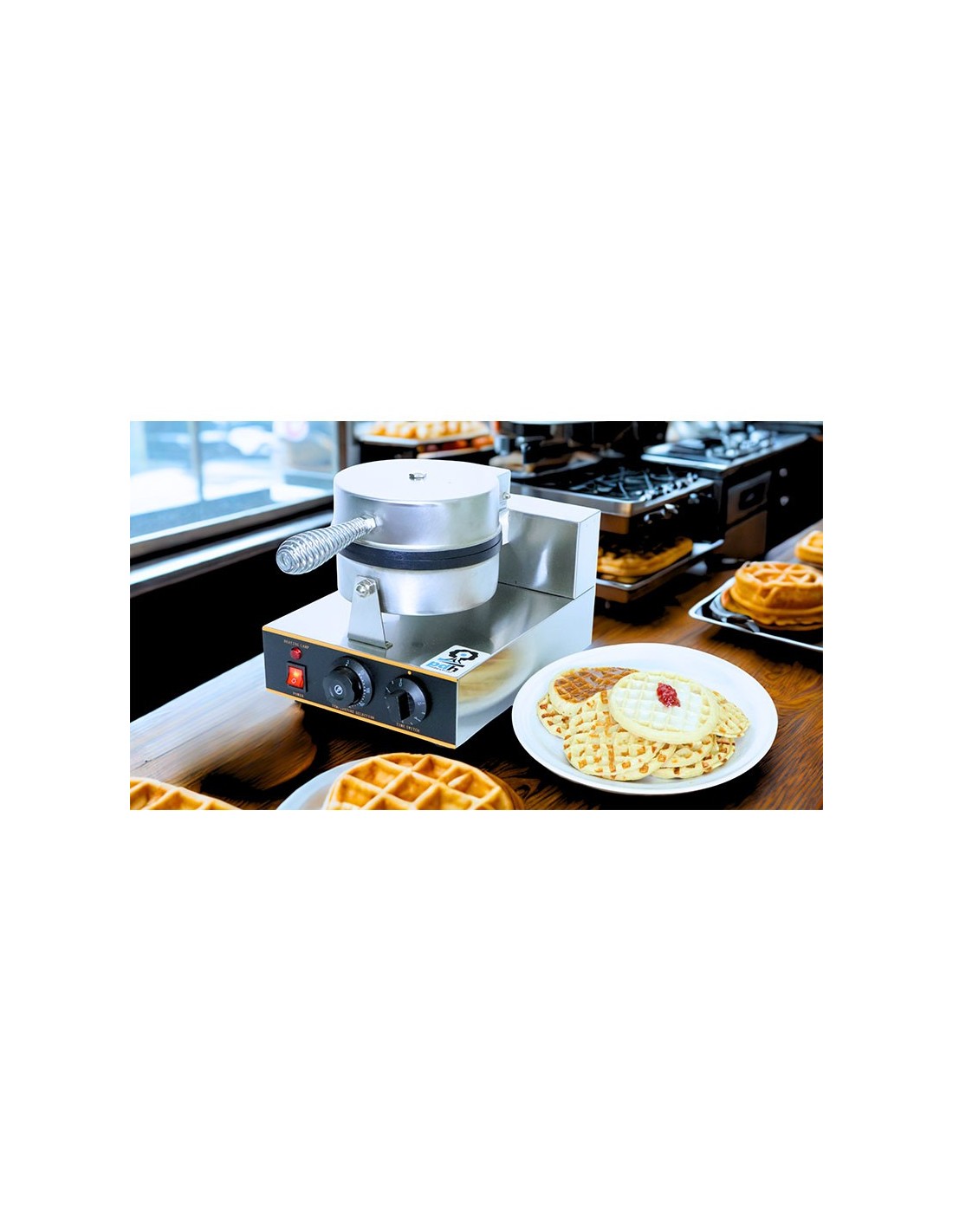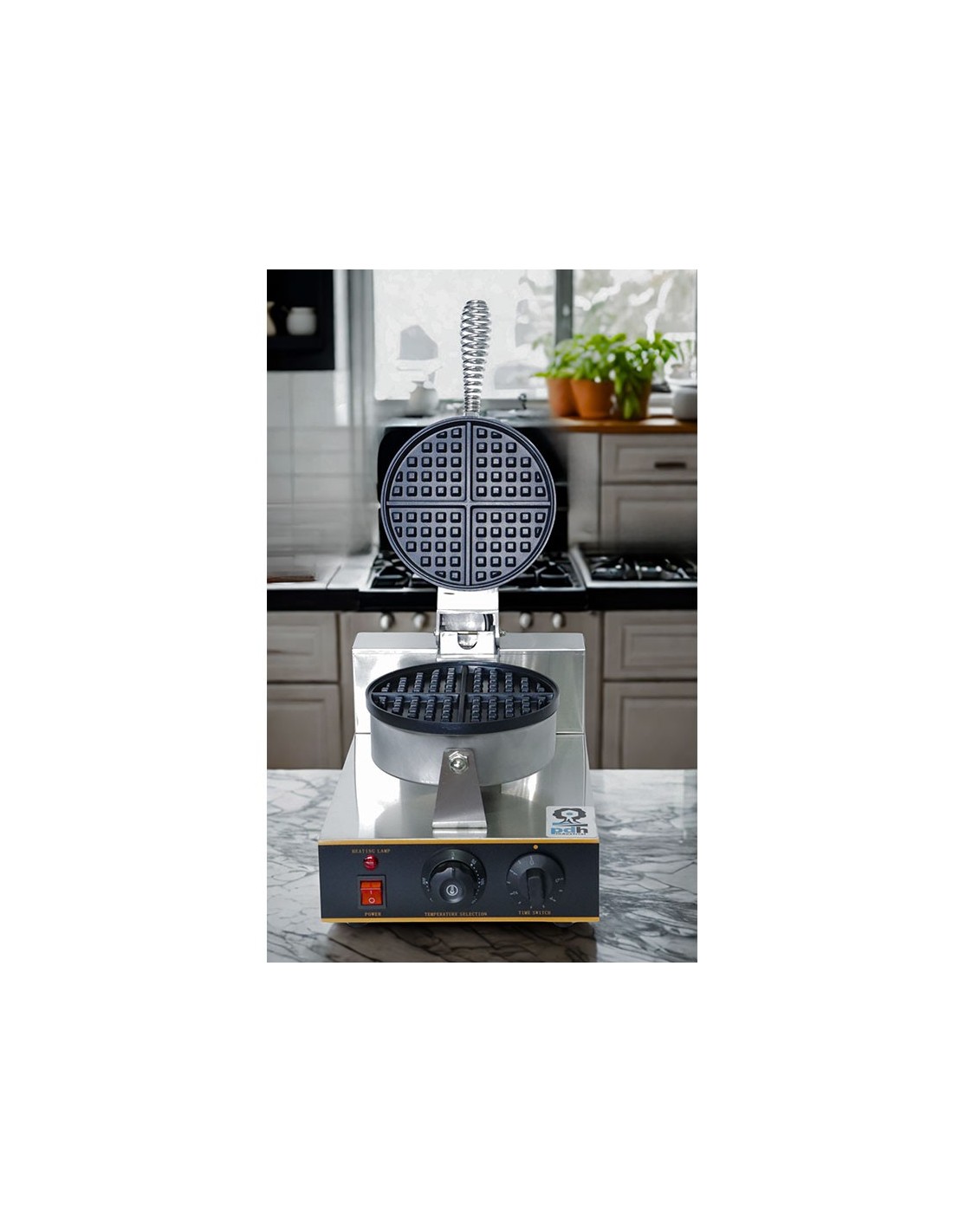 Waflera Comercial marca PDH, Maquina comercial para preparar wafles circulares partidos en cuartos, Ideal para usar en cafetería, fabricado en acero inoxidable con antiadherente, Termostato variable desde 50°C hasta 300°C, Perilla de tiempo desde 1 minutos hasta 5 minutos, foco indicador de encendido, consumo de energía de 1,200 watts. Wafleras. En Proveedora del Hogar ofrecemos Wafleras y una gran variedad de electrodomésticos para tu cocina, negocio y hogar, de la mejor calidad al mejor precio.