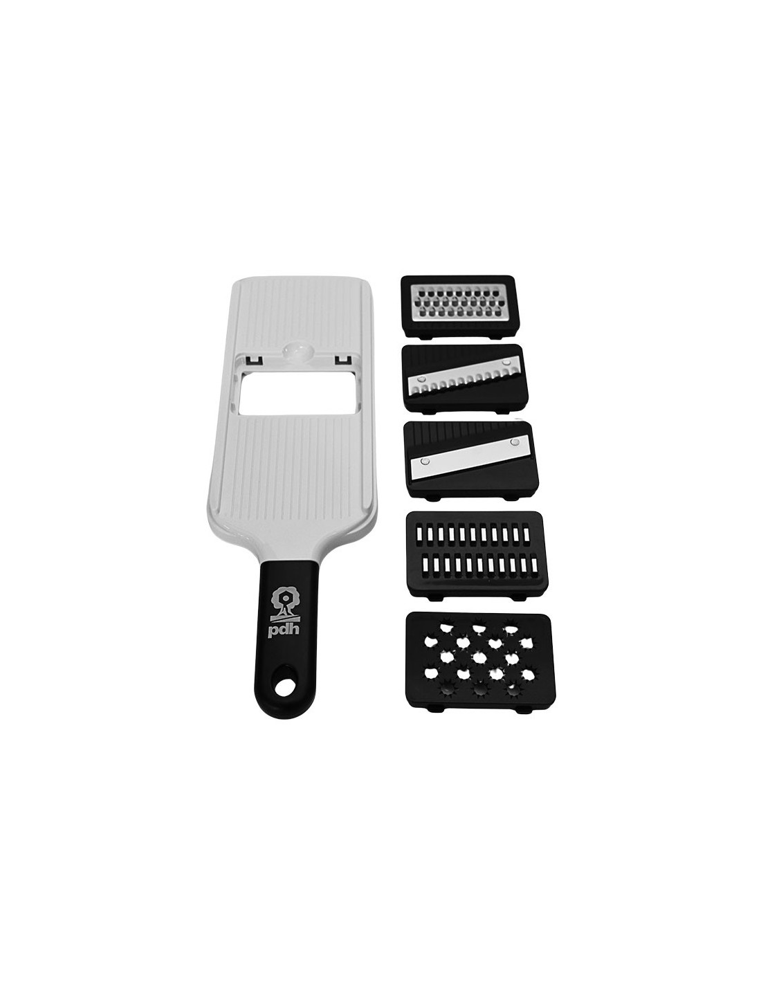 Cortador de Mandolina modelo PDH, Fabricado en plástico ABS, Cuchillas de acero inoxidable, 5 practicas navajas, Ideal para rebanar, rayar quesos, cortar, picar sus frutas y/o verduras, Mayor filo en las cuchillas, para un corte mas sencillo y rápido de sus verduras, Mango desmontable para un mayor soporte, Practica mandolina para un mejor agarre de sus verduras y mayor seguridad, Base antiderrapante, Practica tapa hermética para guardar y conservar sus alimentos. Nuestro cortador cuenta con 5 cuchillas de diferente corte, que nos facilitara la tarea de cortar, rebanar y rallar de una forma rápida y sencilla sus frutas y vegetales. Ideal para guardar sus frutas y verduras, ya que cuenta con una tapa hermética que conservara por mas tiempo sus alimentos. En Proveedora del Hogar ofrecemos una gran variedad de artículos para tu cocina, negocio y hogar, de la mejor calidad al mejor precio.